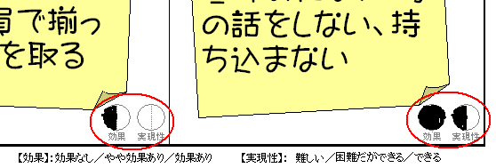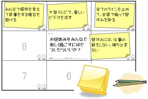 カードを貼るマスは全部で8つですが、人間は本能的にそのマスを埋めようとしますので少なくとも8つの意見を引き出せます。